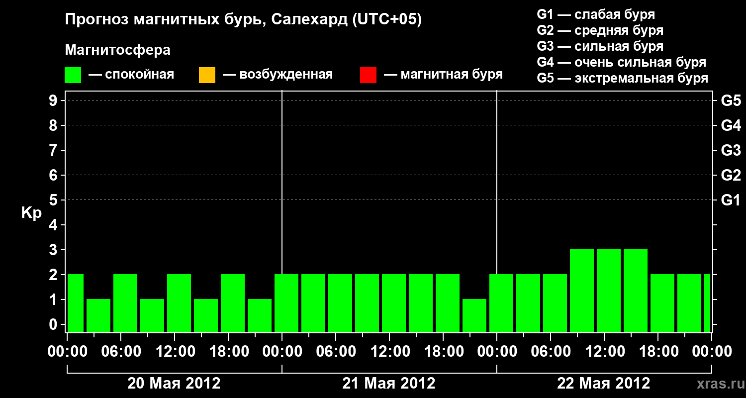 Прогноз магнитных бурь в Салехарде — 20 мая 2012 года