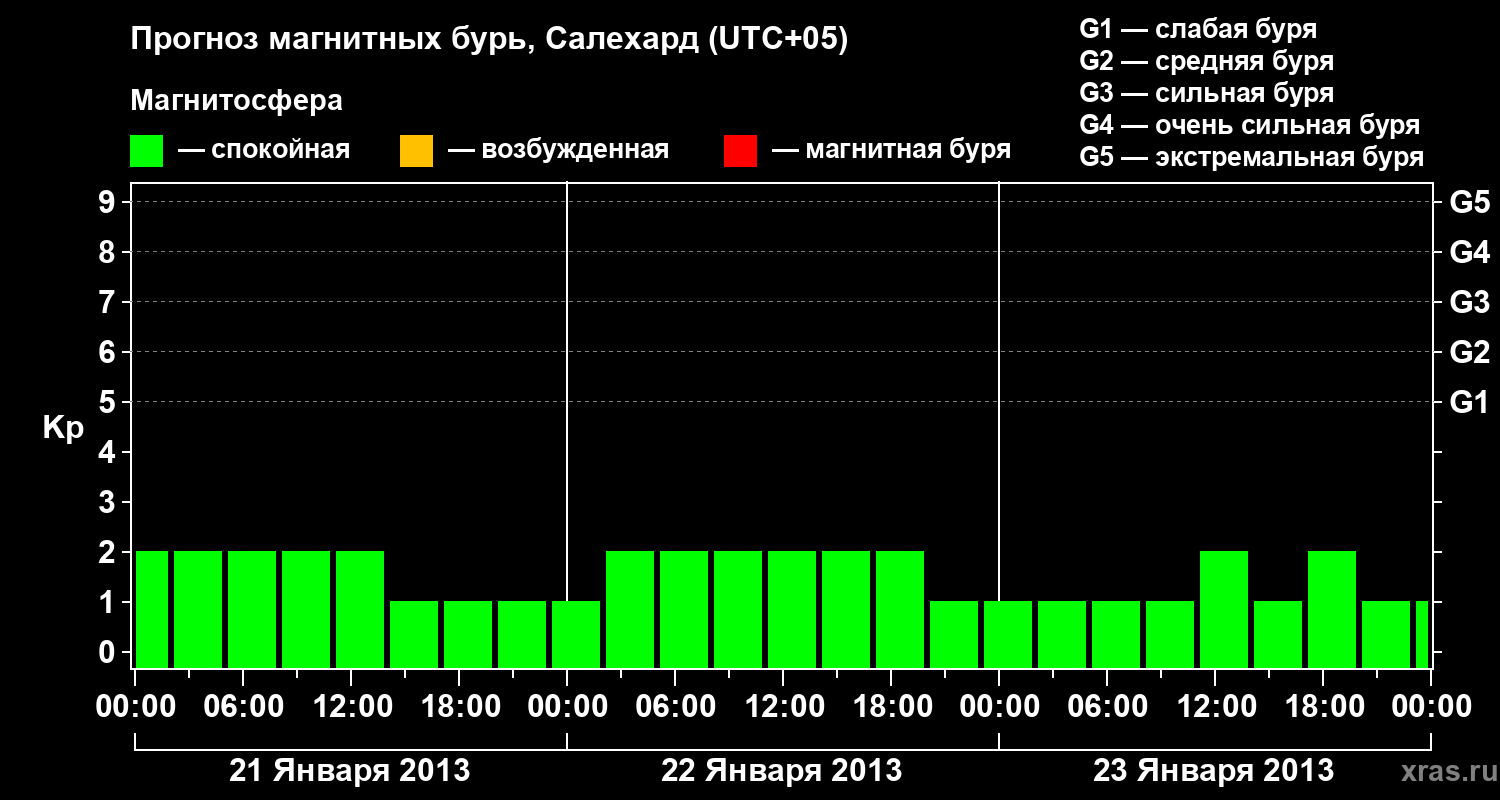 Прогноз магнитных бурь в Салехарде — 21 января 2013 года