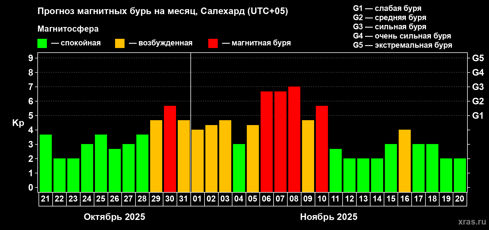Прогноз магнитных бурь в Салехарде — 21 октября 2025 года
