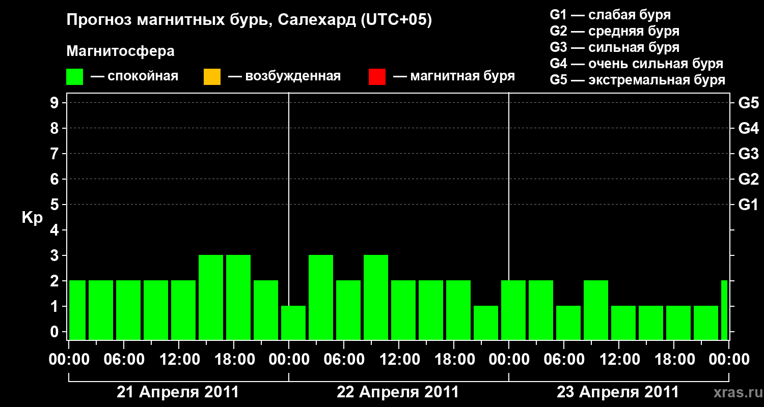 Прогноз магнитных бурь в Салехарде — 21 апреля 2011 года