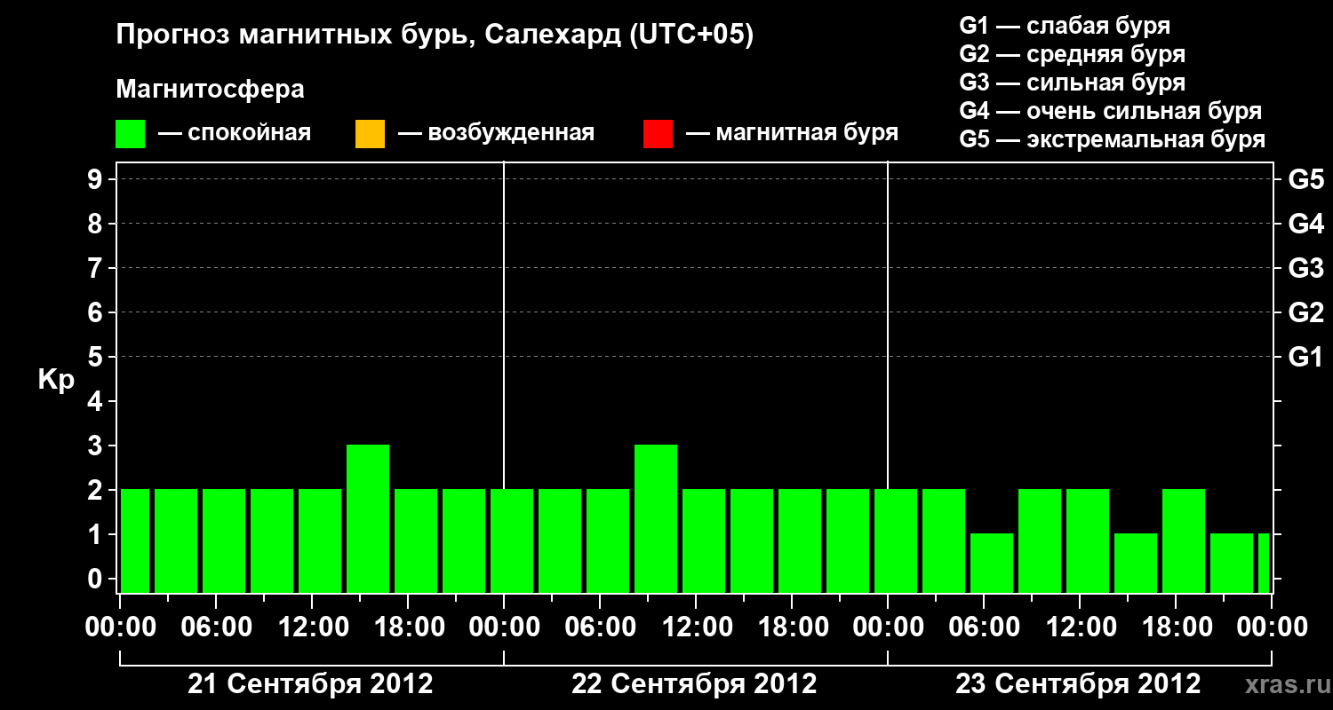 Прогноз магнитных бурь в Салехарде на 21 сентября 2012 года