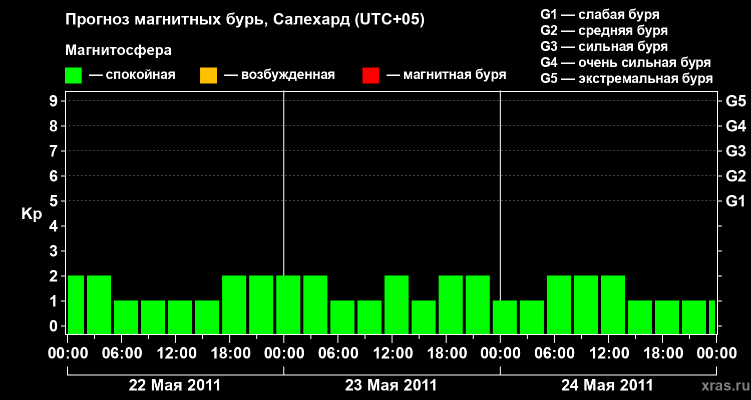 Прогноз магнитных бурь в Салехарде — 22 мая 2011 года