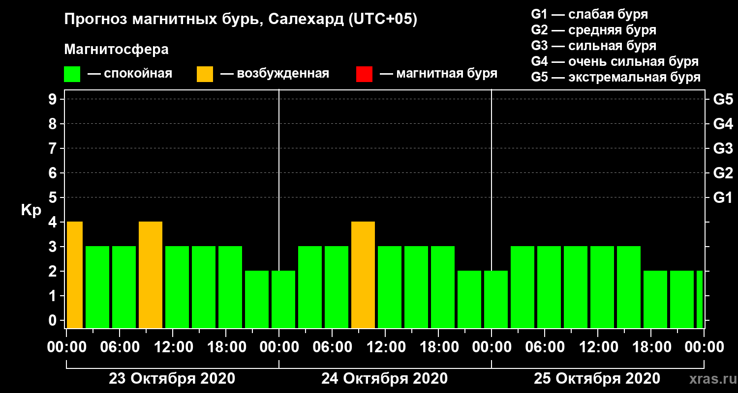 Прогноз магнитных бурь в Салехарде — 23 октября 2020 года