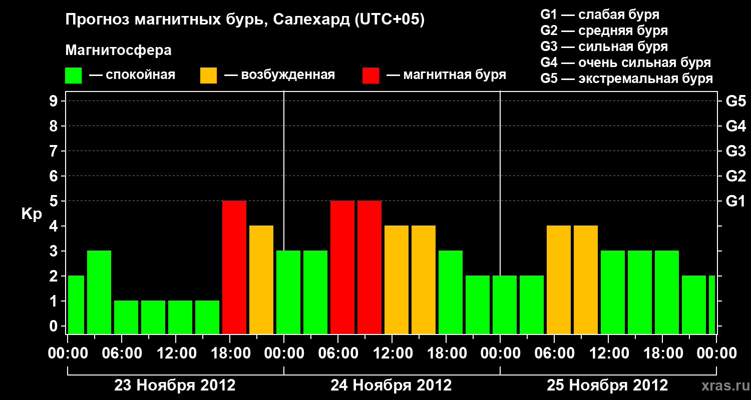 Прогноз магнитных бурь в Салехарде — 23 ноября 2012 года