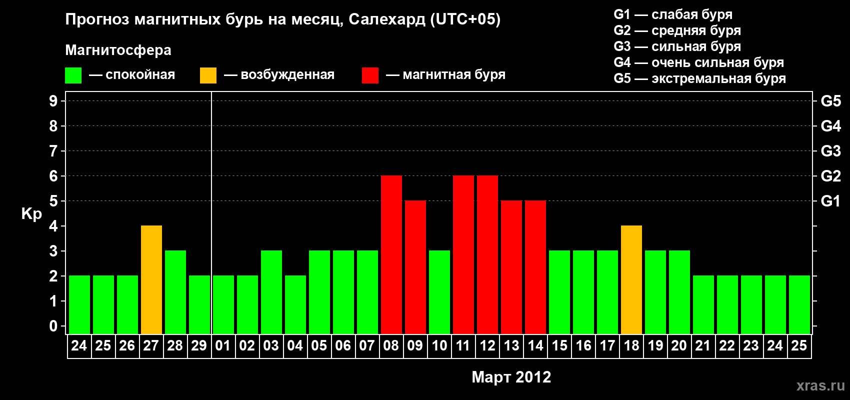 Прогноз магнитных бурь в Салехарде на 24 февраля 2012 года