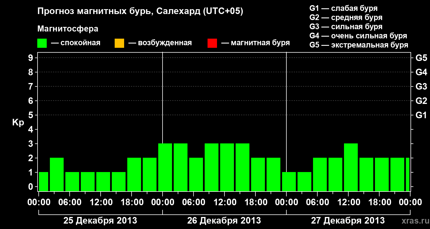 Прогноз магнитных бурь в Салехарде — 25 декабря 2013 года
