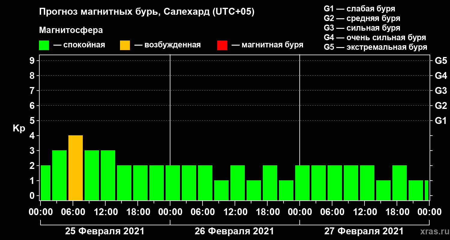 Прогноз магнитных бурь в Салехарде на 25 февраля 2021 года