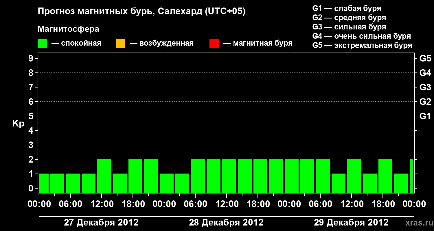 Прогноз магнитных бурь в Салехарде на 27 декабря 2012 года