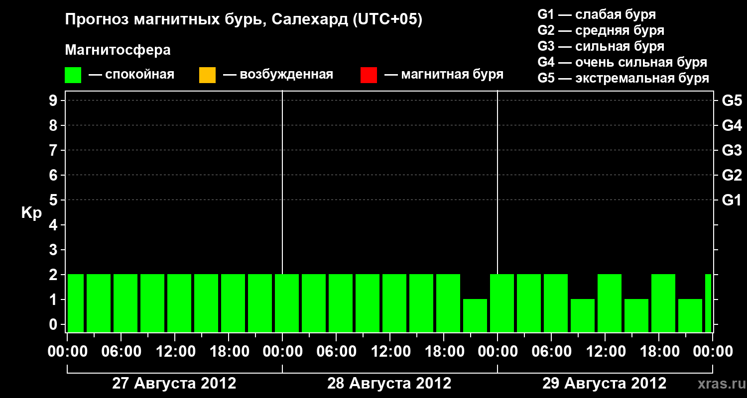 Прогноз магнитных бурь в Салехарде на 27 августа 2012 года