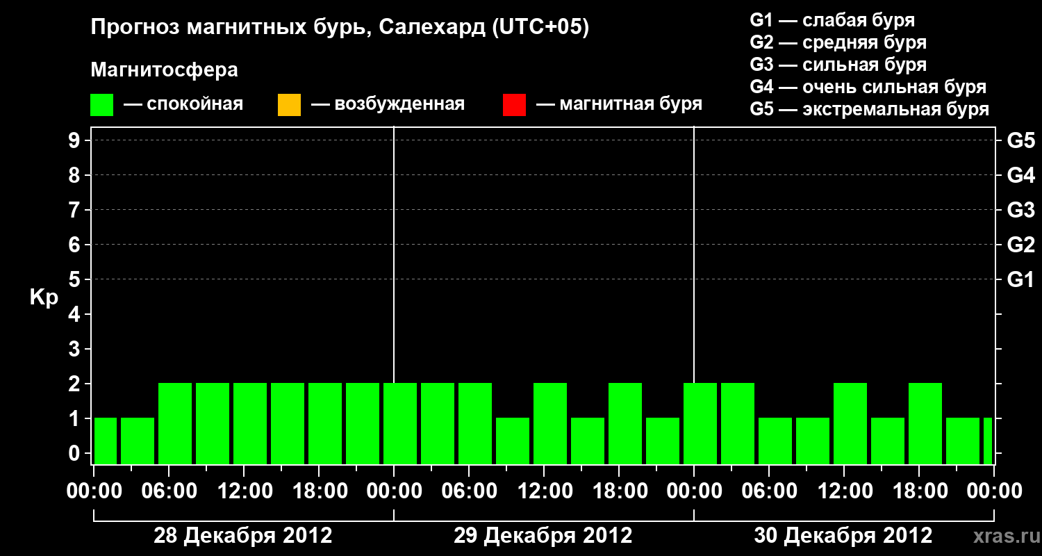 Прогноз магнитных бурь в Салехарде на 28 декабря 2012 года