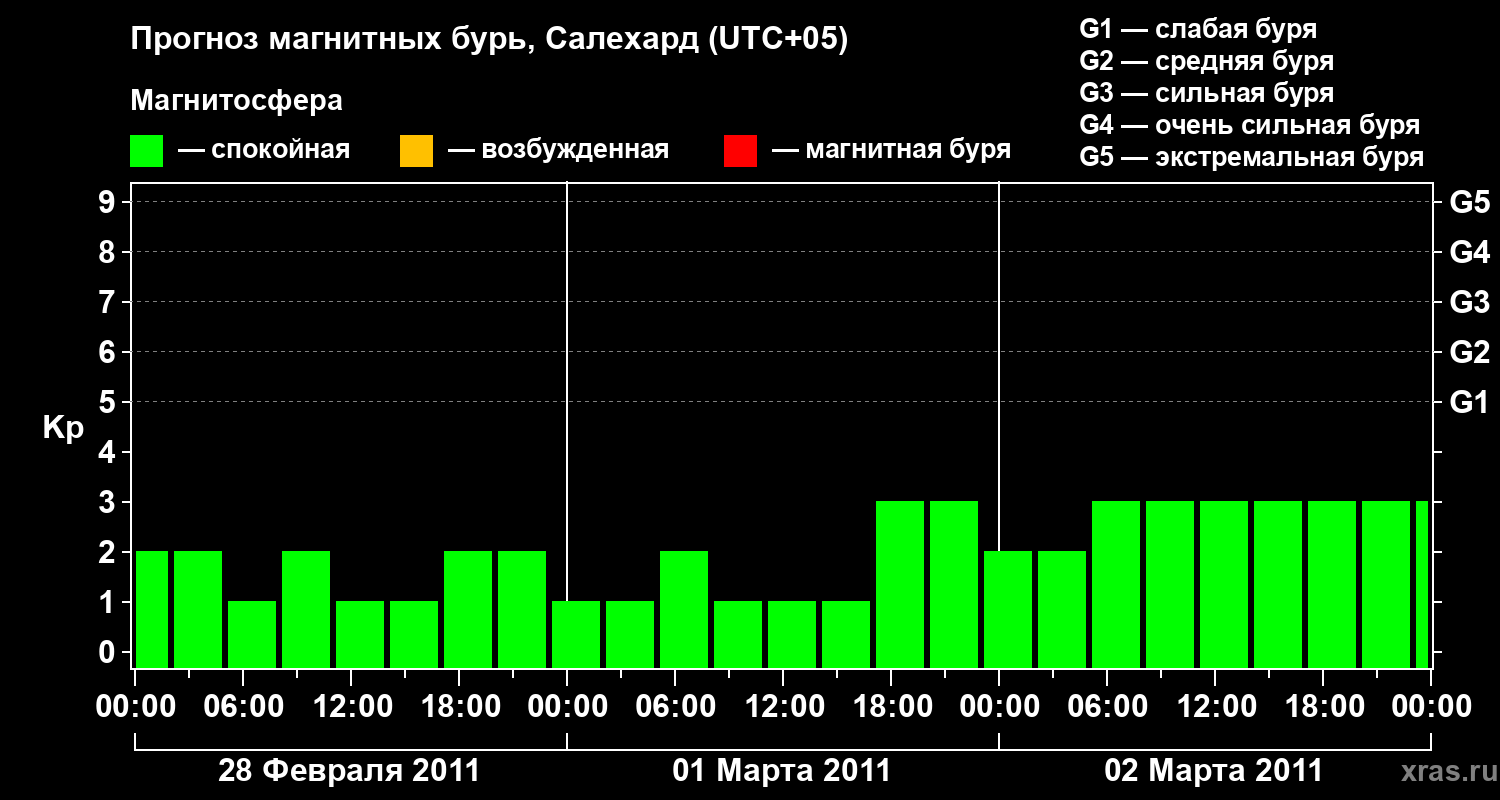 Прогноз магнитных бурь в Салехарде на 28 февраля 2011 года