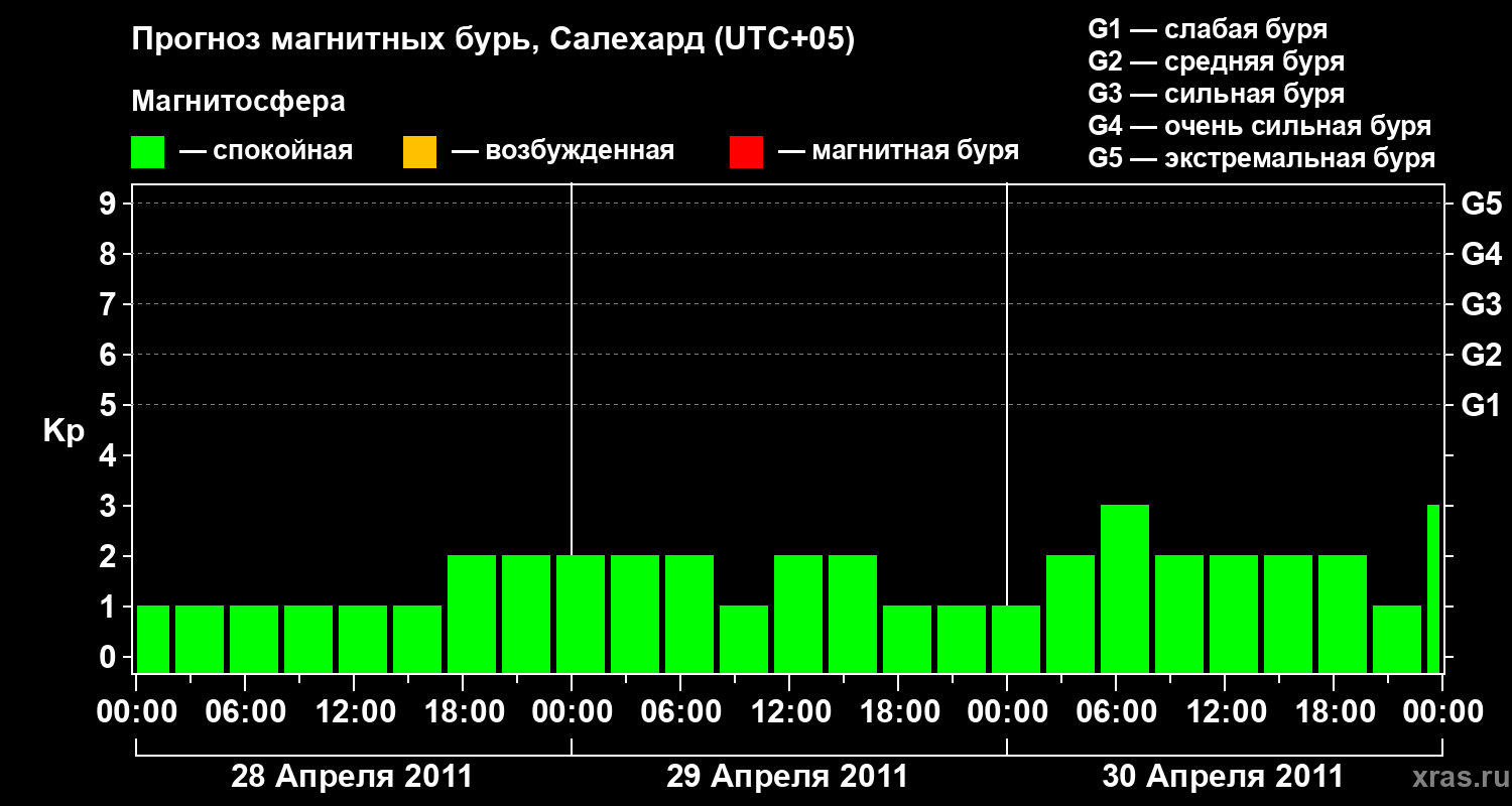 Прогноз магнитных бурь в Салехарде — 28 апреля 2011 года