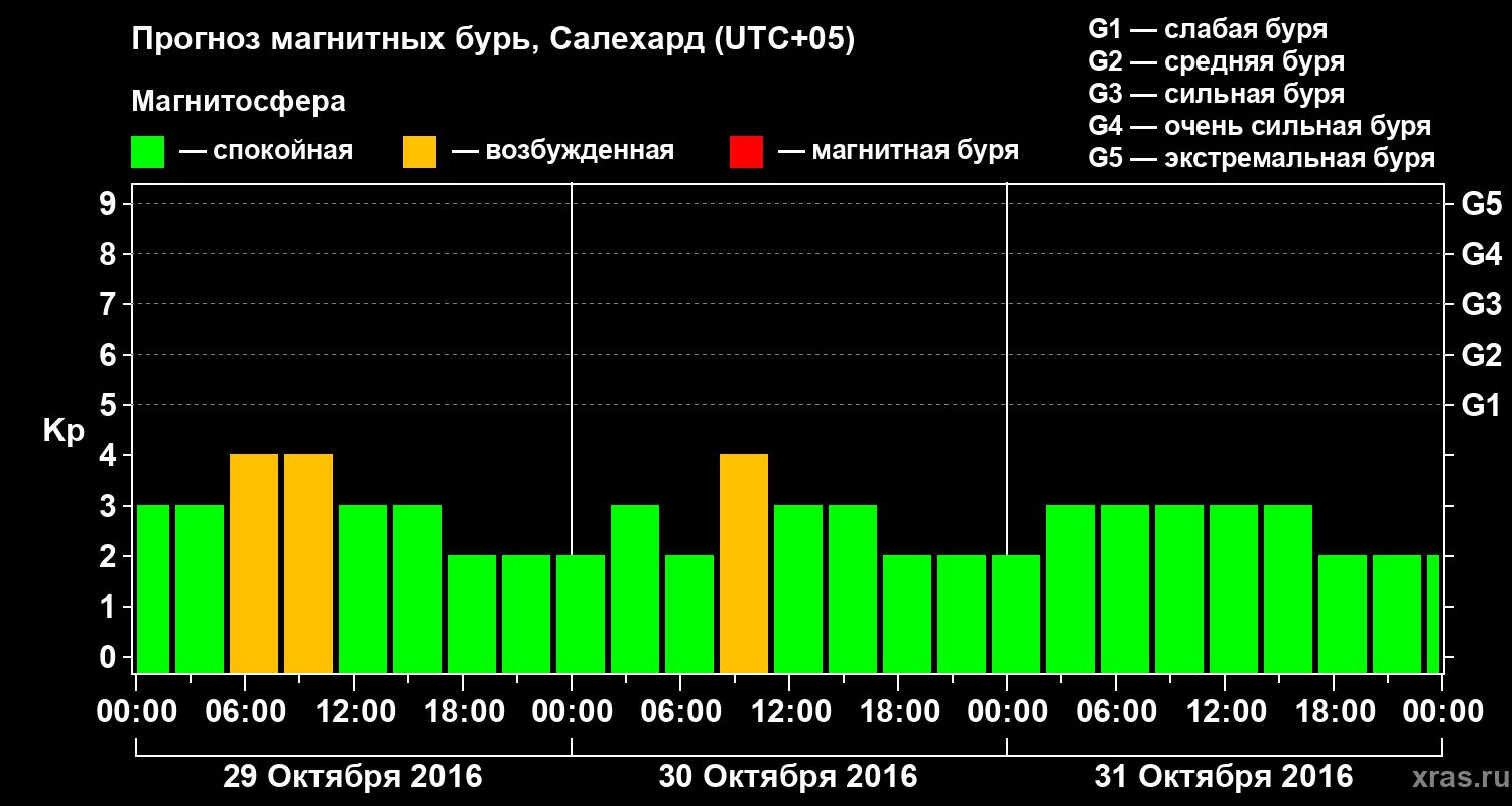 Прогноз магнитных бурь в Салехарде на 29 октября 2016 года