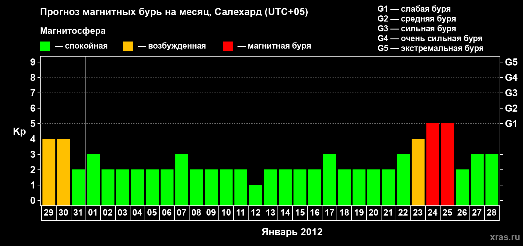 Прогноз магнитных бурь в Салехарде — 29 декабря 2011 года