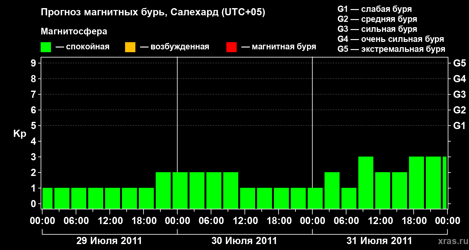 Прогноз магнитных бурь в Салехарде — 29 июля 2011 года