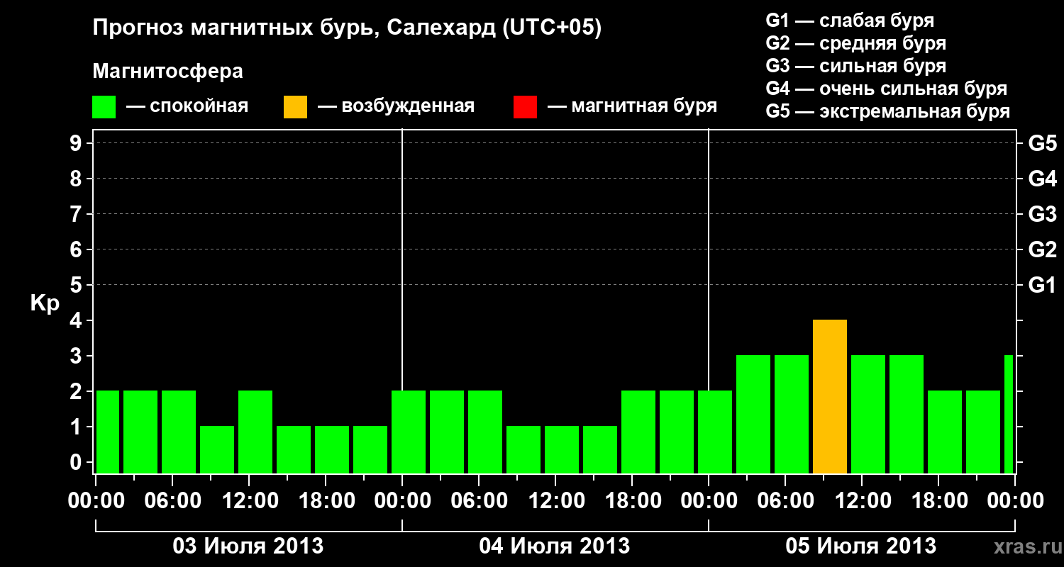 Прогноз магнитных бурь в Салехарде на 3 июля 2013 года