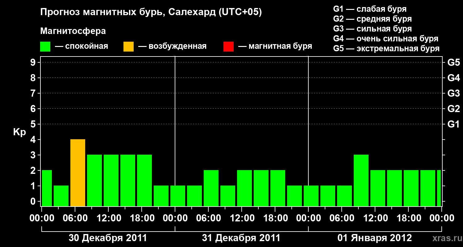 Прогноз магнитных бурь в Салехарде — 30 декабря 2011 года