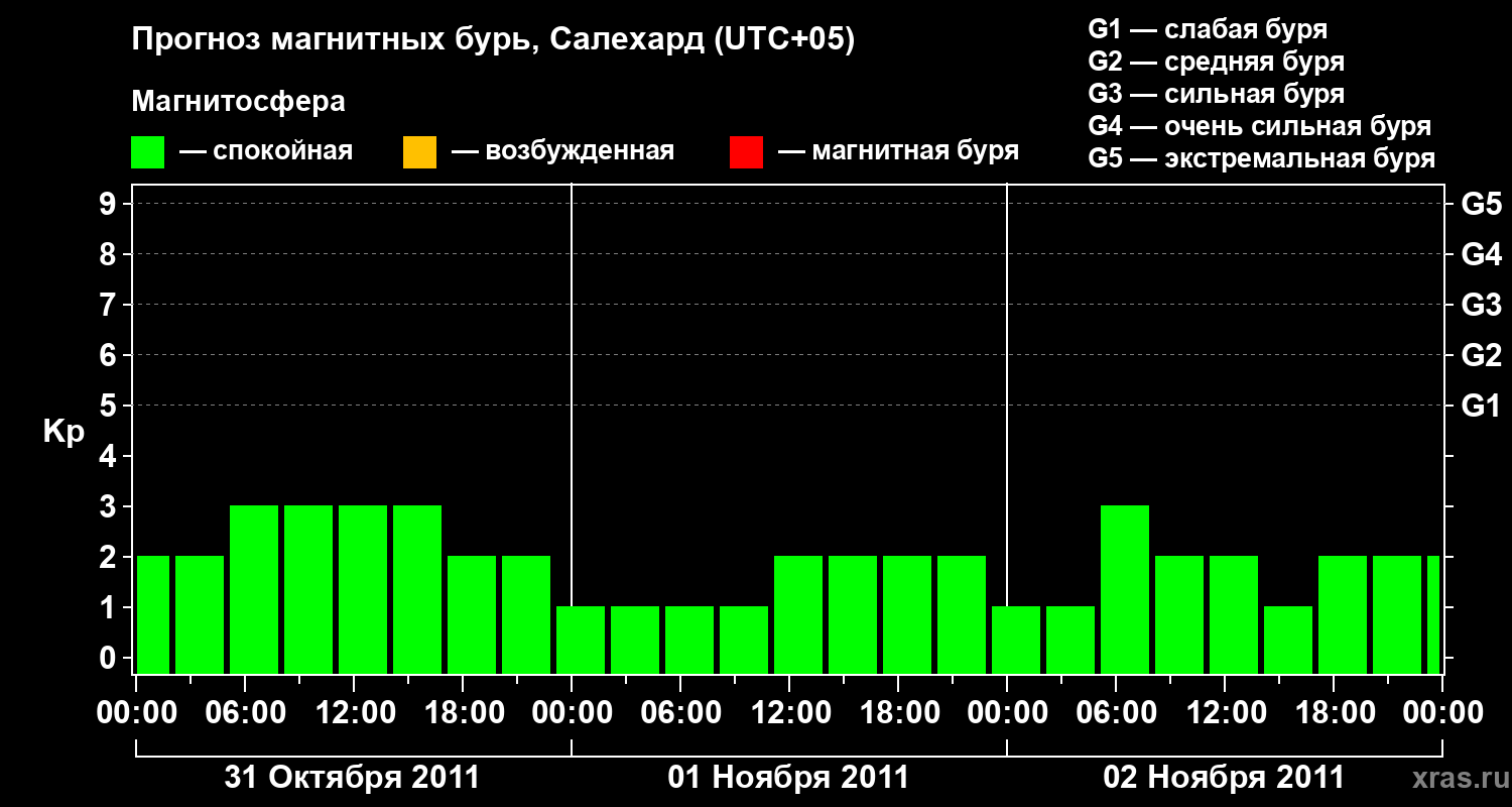 Прогноз магнитных бурь в Салехарде — 31 октября 2011 года