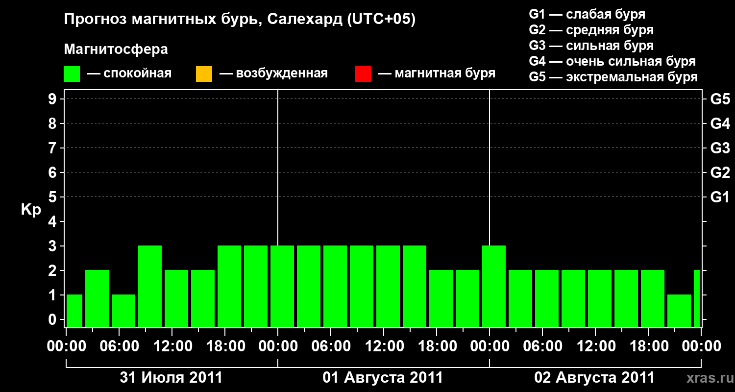 Прогноз магнитных бурь в Салехарде — 31 июля 2011 года