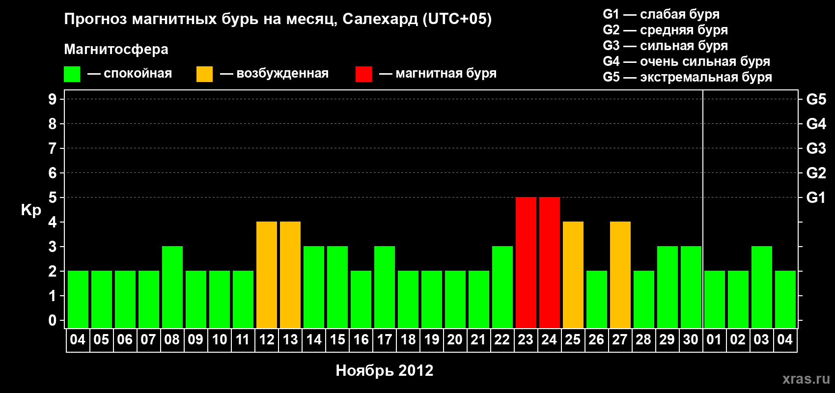 Прогноз магнитных бурь в Салехарде — 4 ноября 2012 года
