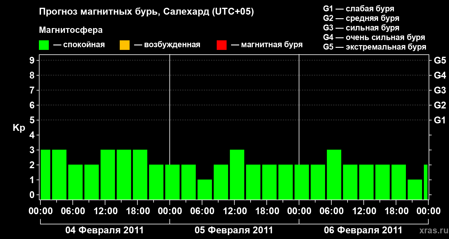 Прогноз магнитных бурь в Салехарде на 4 февраля 2011 года