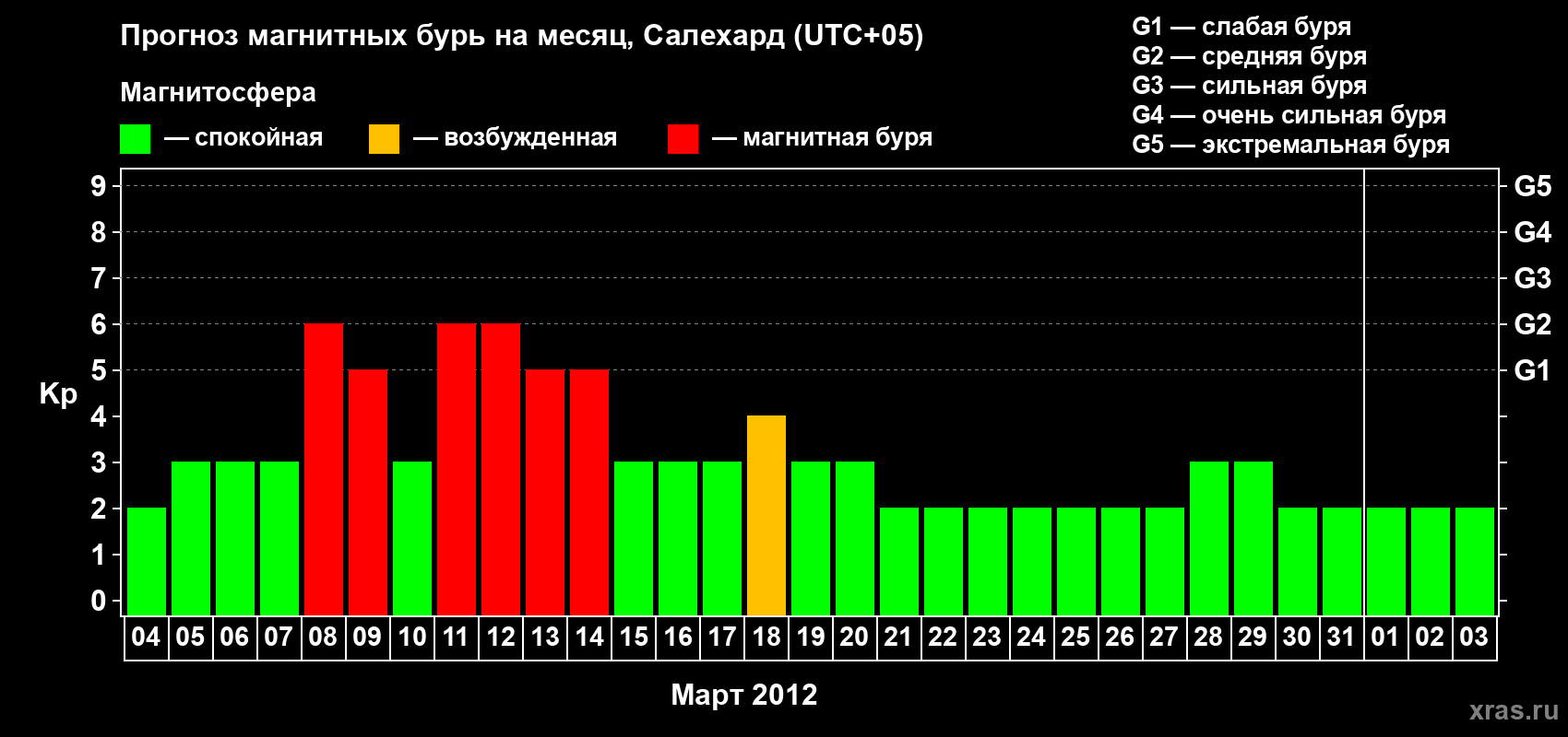 Прогноз магнитных бурь в Салехарде на 4 марта 2012 года