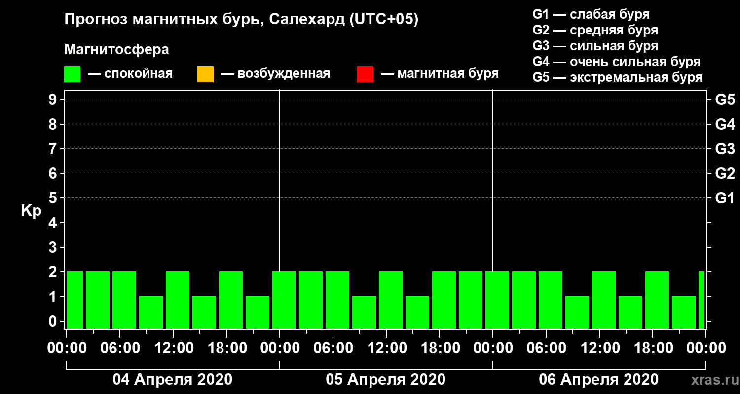 Прогноз магнитных бурь в Салехарде на 4 апреля 2020 года