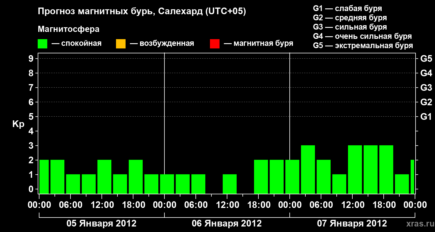 Прогноз магнитных бурь в Салехарде — 5 января 2012 года