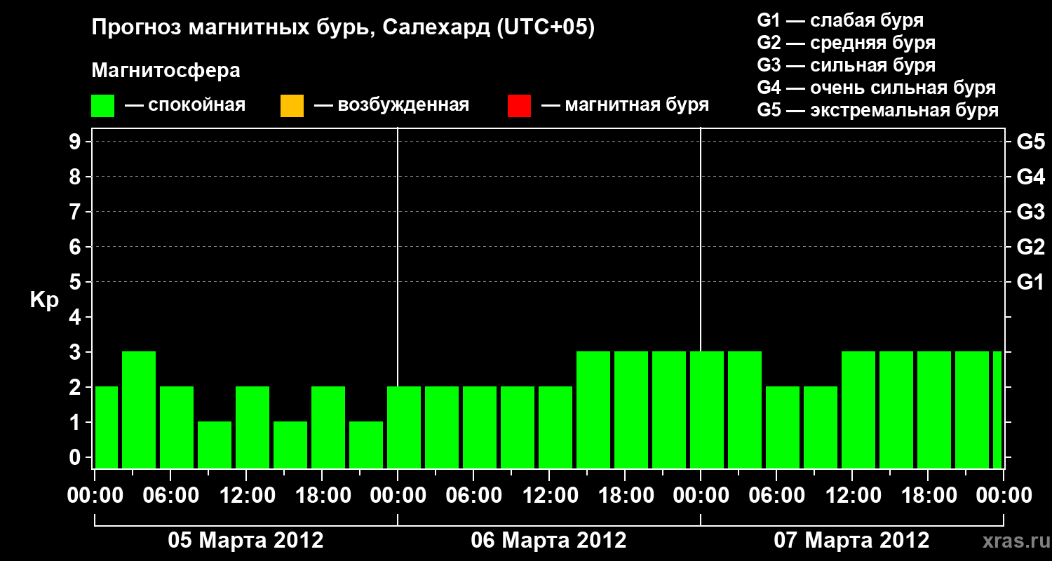 Прогноз магнитных бурь в Салехарде на 5 марта 2012 года