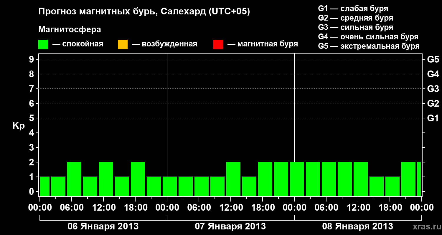 Прогноз магнитных бурь в Салехарде — 6 января 2013 года