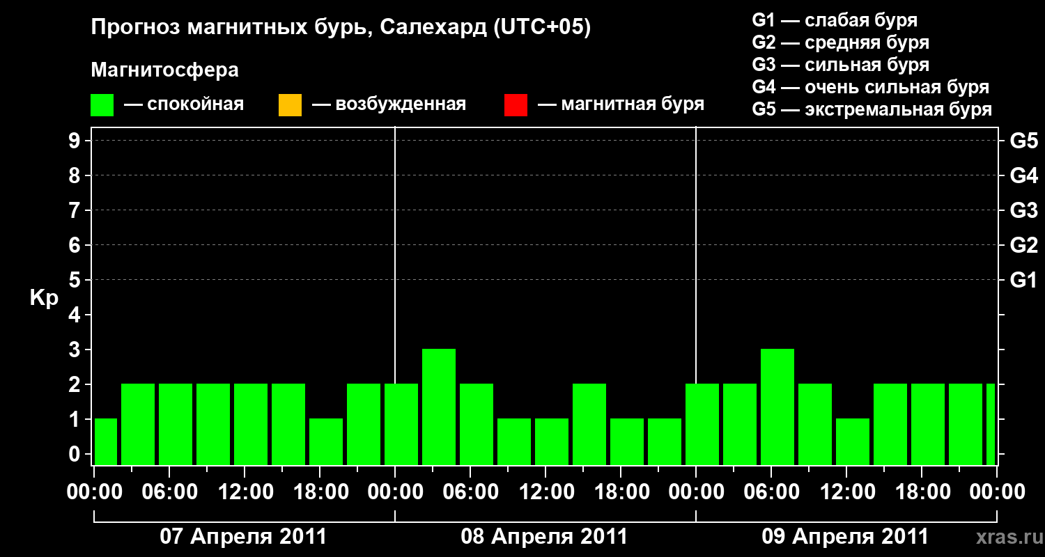 Прогноз магнитных бурь в Салехарде на 7 апреля 2011 года