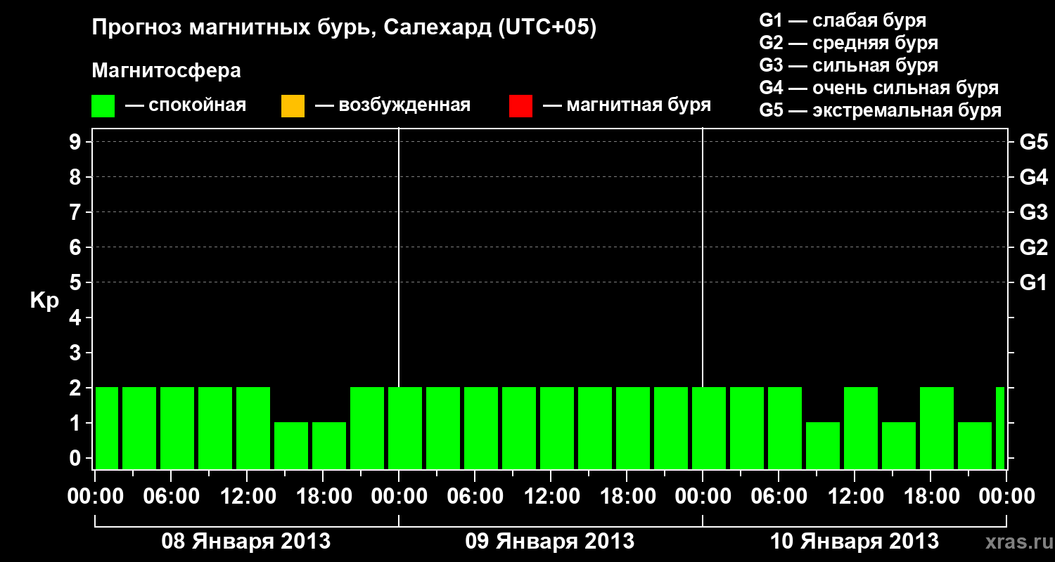 Прогноз магнитных бурь в Салехарде — 8 января 2013 года