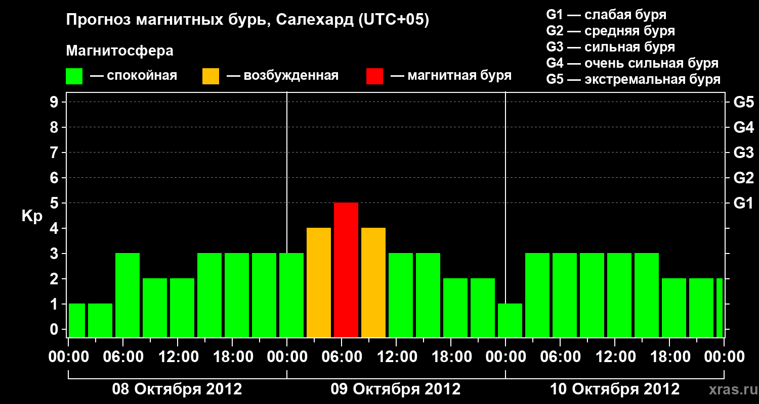 Прогноз магнитных бурь в Салехарде на 8 октября 2012 года