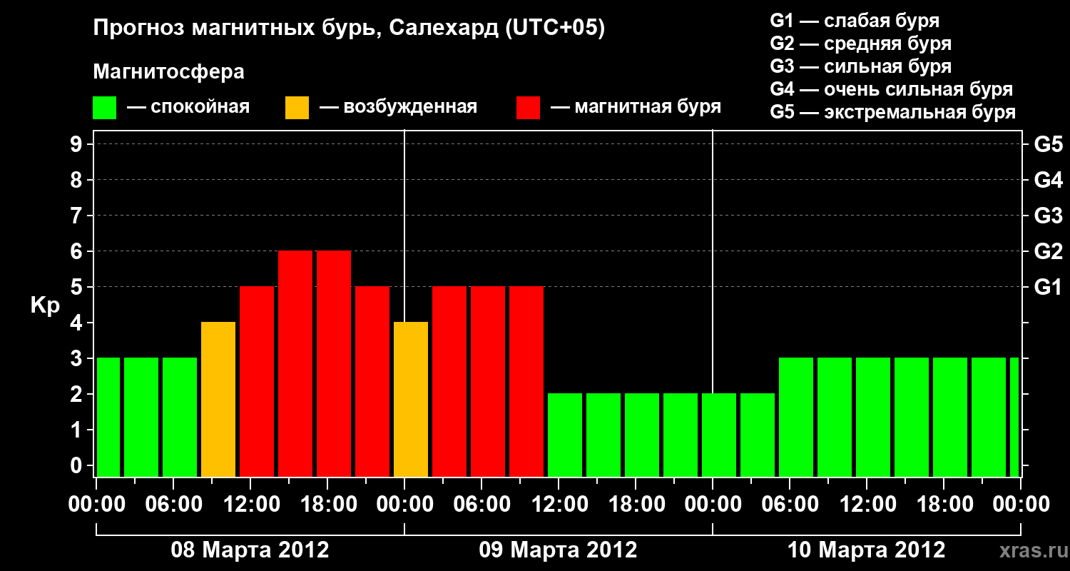 Прогноз магнитных бурь в Салехарде — 8 марта 2012 года