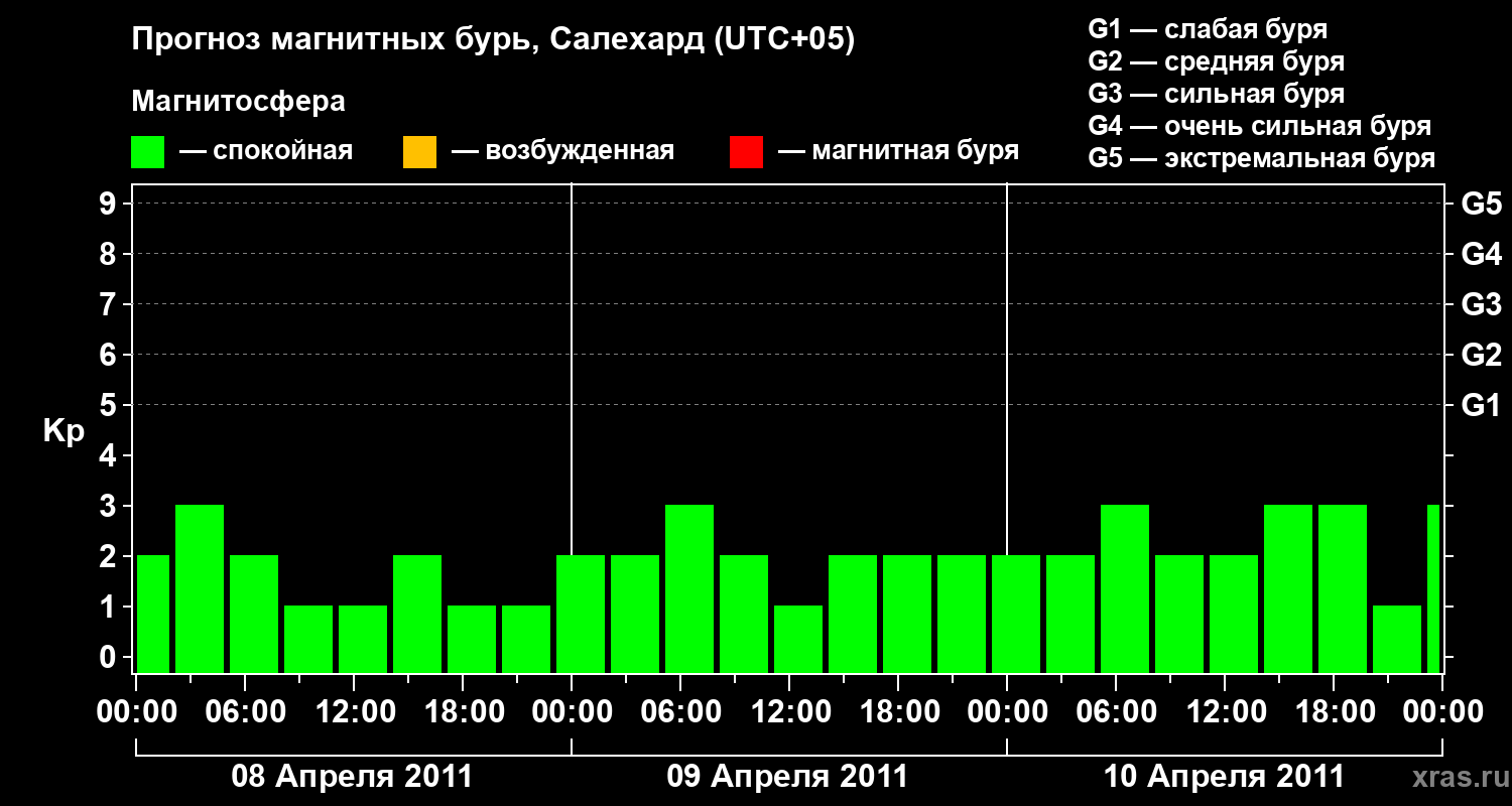 Прогноз магнитных бурь в Салехарде на 8 апреля 2011 года