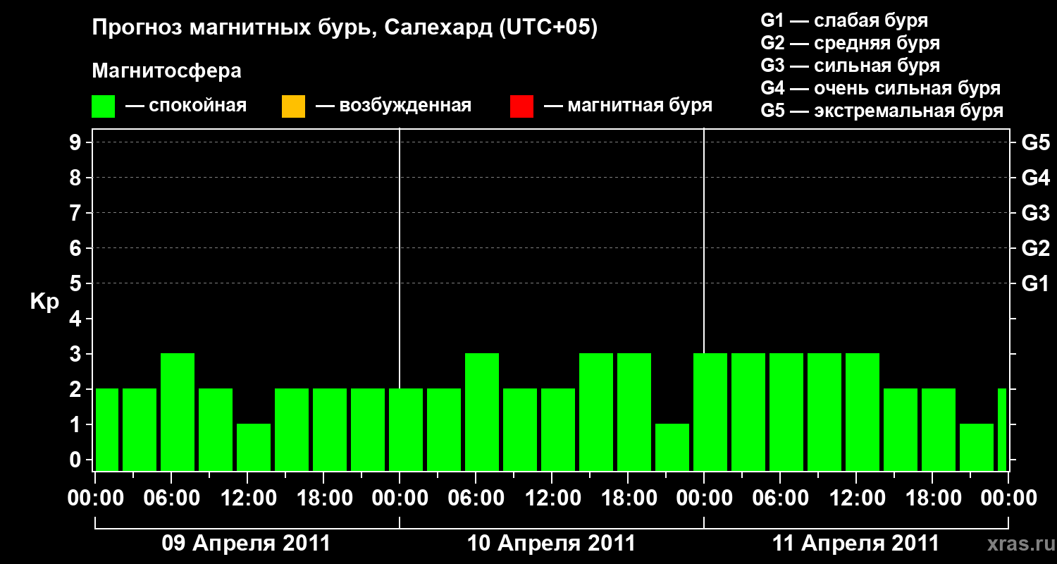 Прогноз магнитных бурь в Салехарде на 9 апреля 2011 года