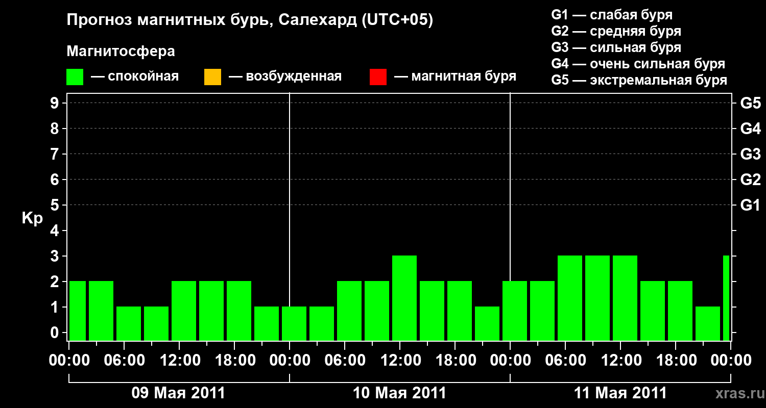 Прогноз магнитных бурь в Салехарде — 9 мая 2011 года