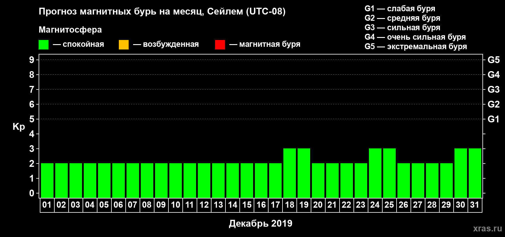 Прогноз магнитных бурь в Сейлеме — 1 декабря 2019 года