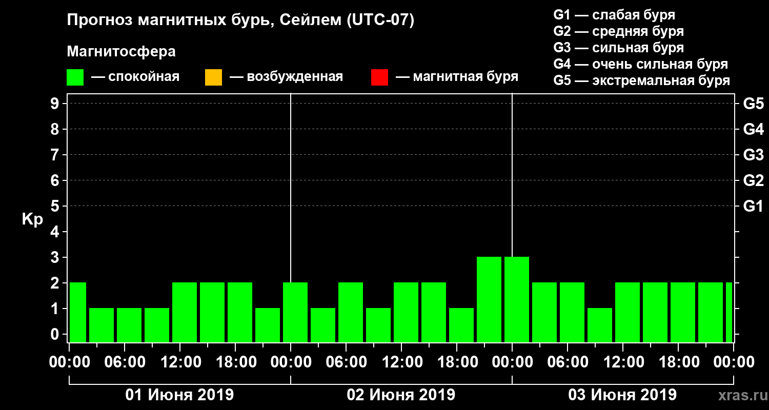 Прогноз магнитных бурь в Сейлеме — 1 июня 2019 года