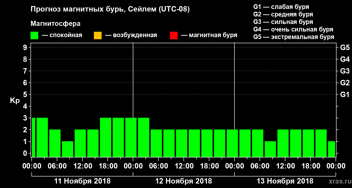 Прогноз магнитных бурь в Сейлеме — 11 ноября 2018 года