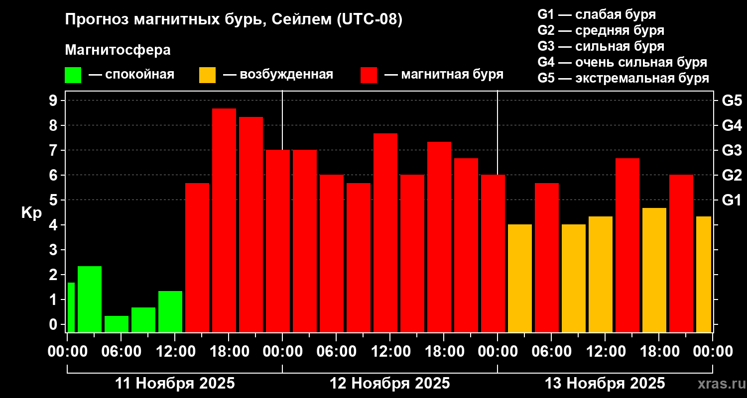 Прогноз магнитных бурь в Сейлеме — 11 ноября 2025 года