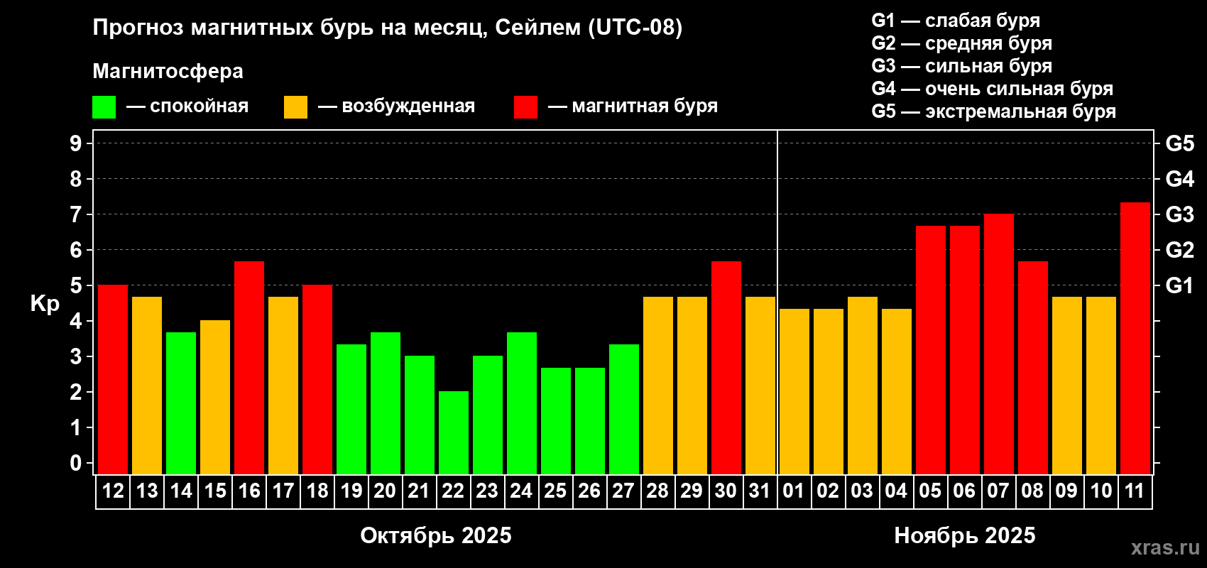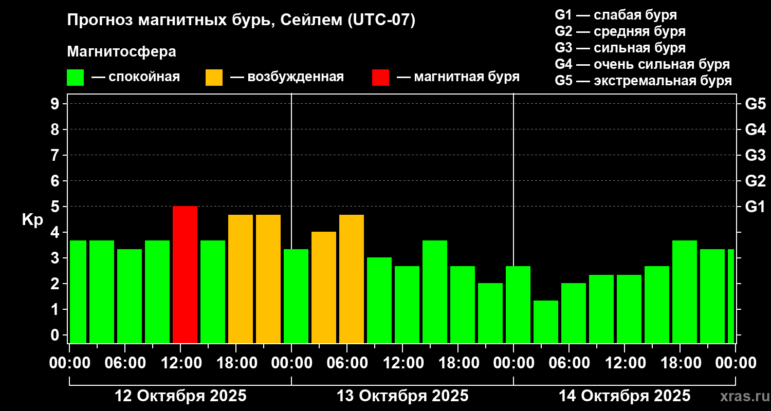 Прогноз магнитных бурь в Сейлеме — 12 октября 2025 года
