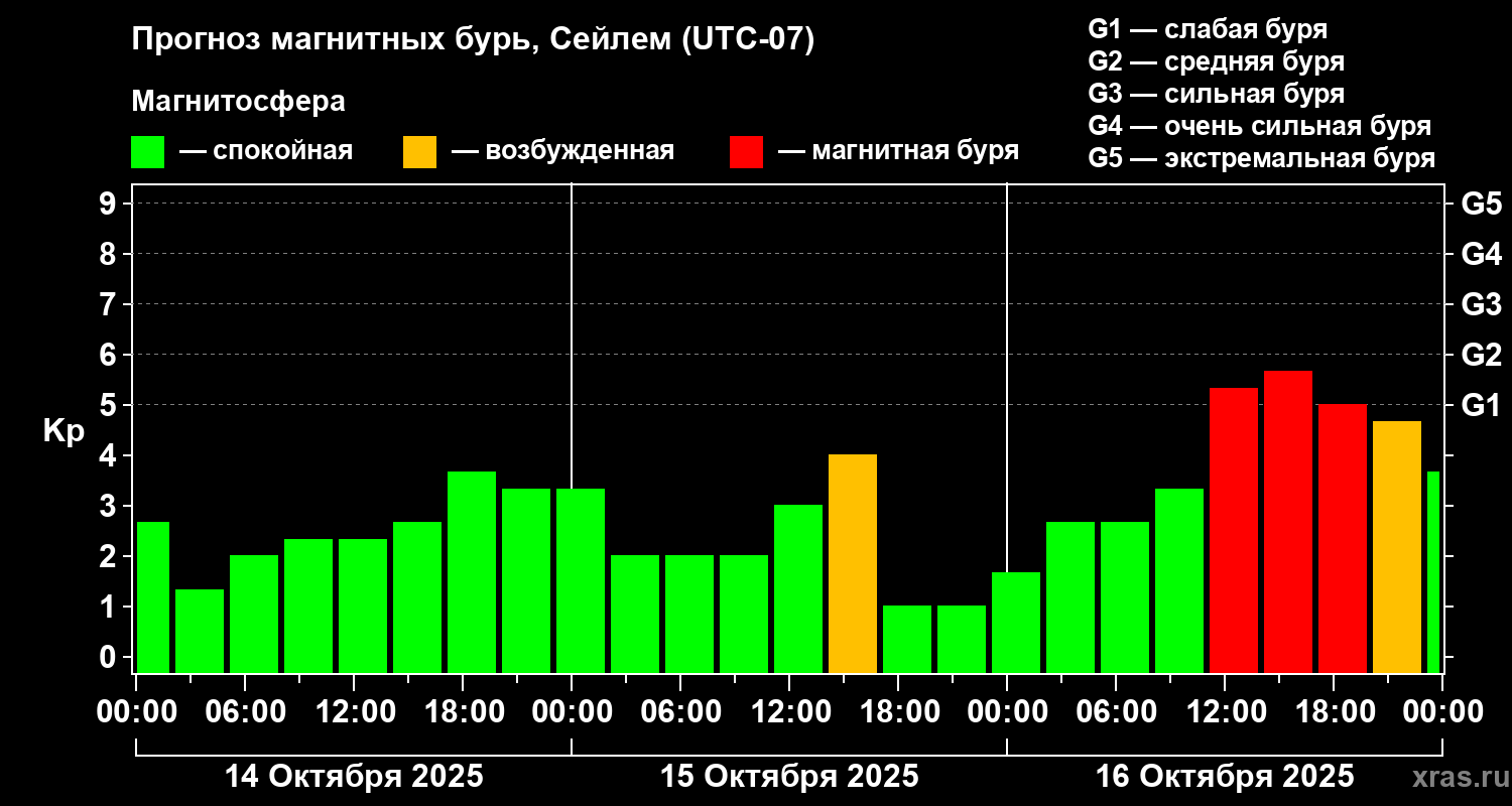 Прогноз магнитных бурь в Сейлеме — 14 октября 2025 года