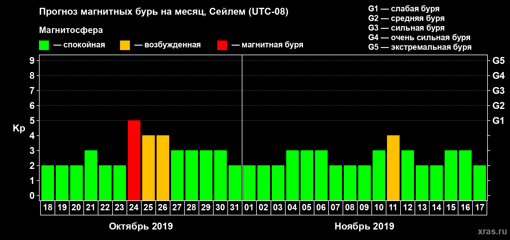 Прогноз магнитных бурь в Сейлеме — 18 октября 2019 года