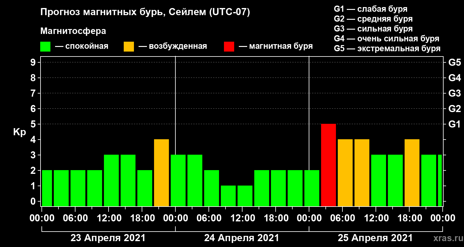 Прогноз магнитных бурь в Сейлеме на 23 апреля 2021 года