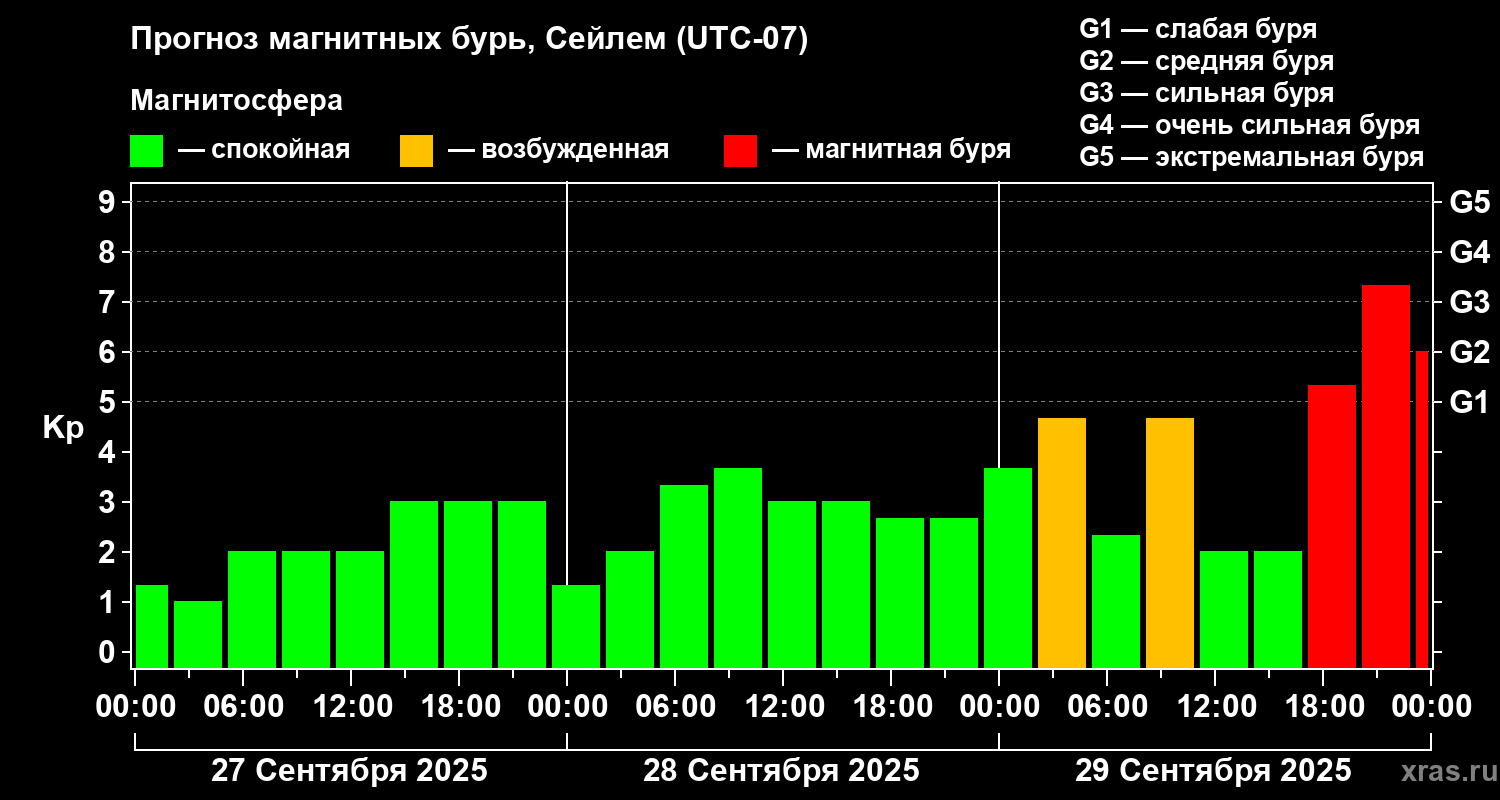 Прогноз магнитных бурь в Сейлеме — 27 сентября 2025 года