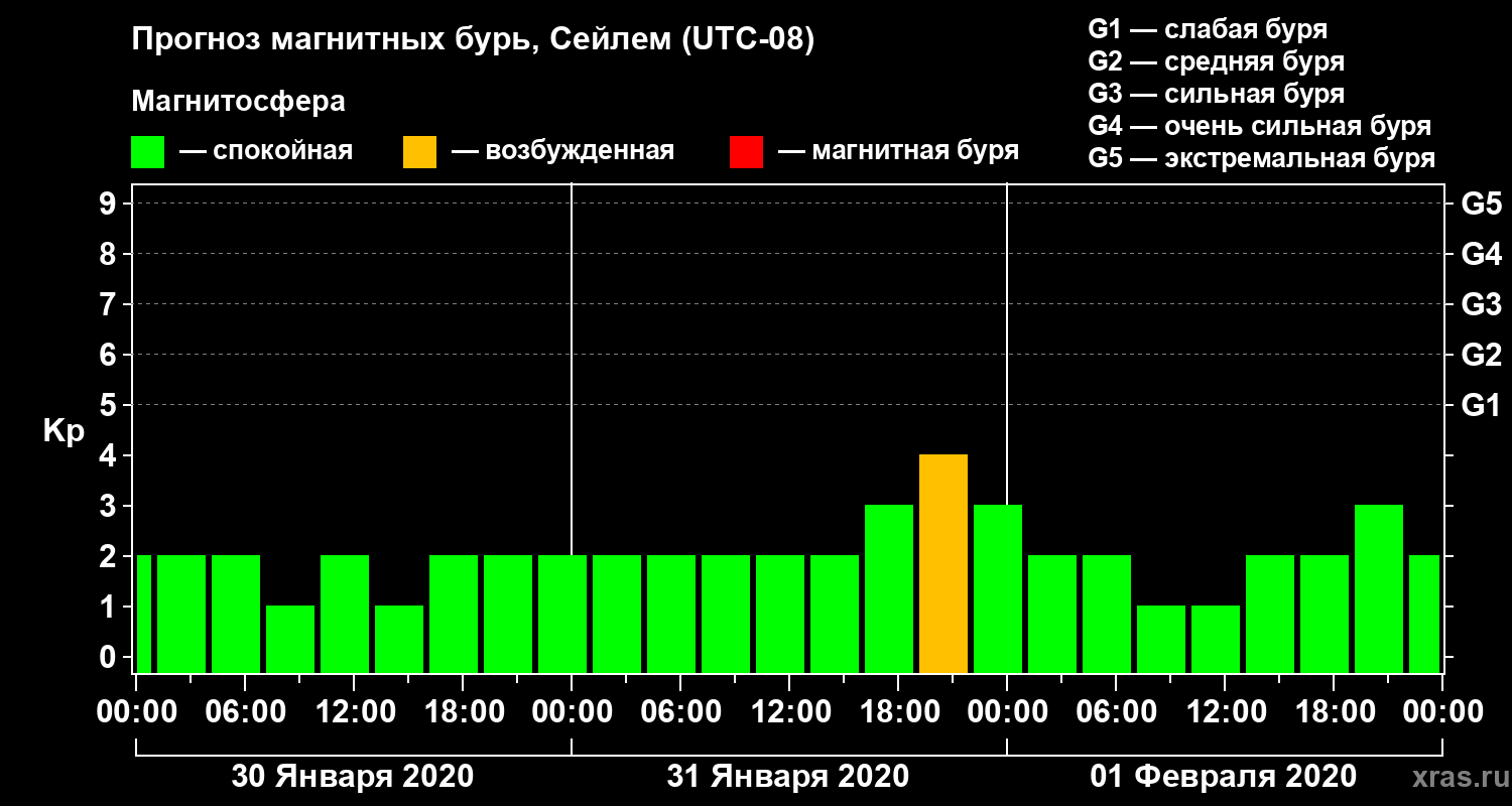Прогноз магнитных бурь в Сейлеме — 30 января 2020 года