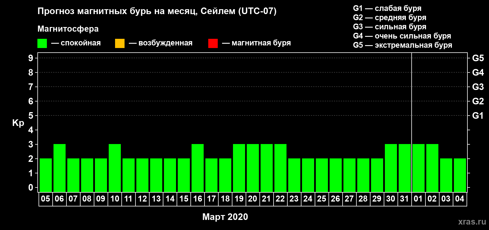 Прогноз магнитных бурь в Сейлеме — 5 марта 2020 года