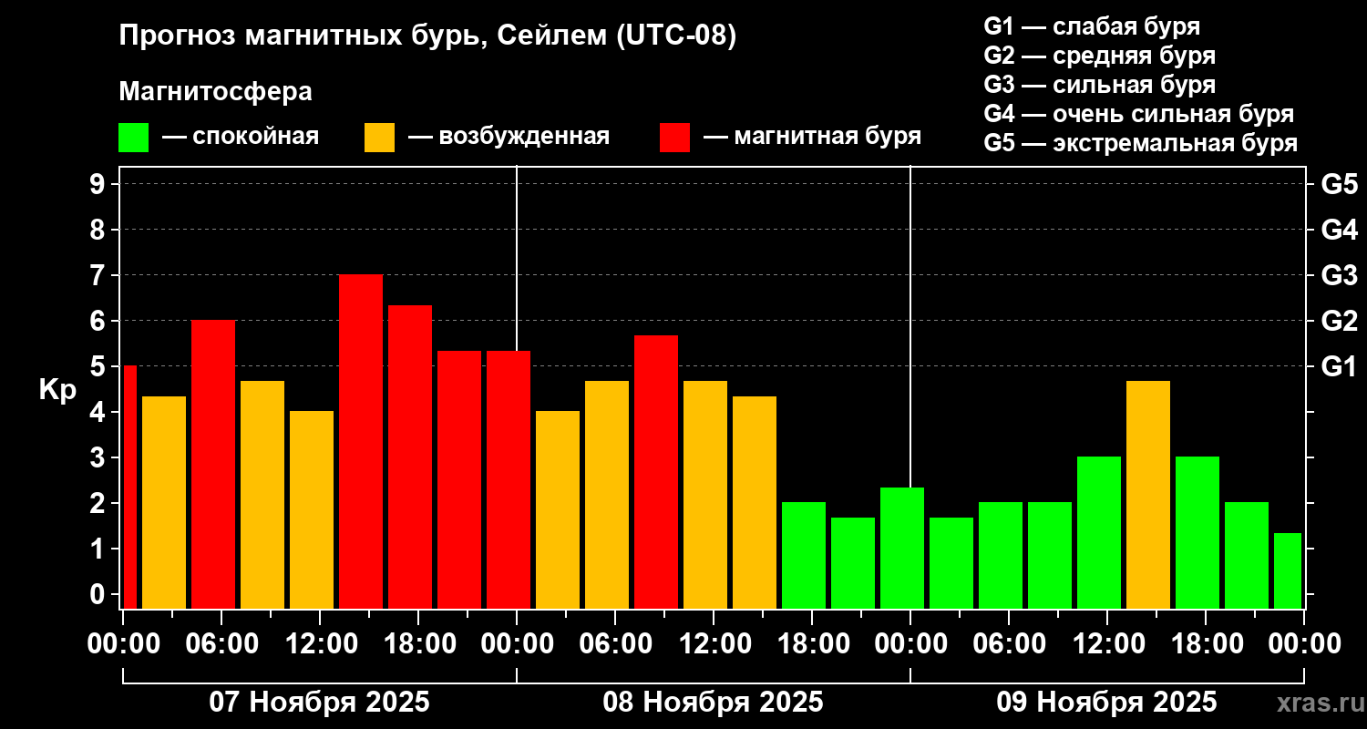 Прогноз магнитных бурь в Сейлеме — 7 ноября 2025 года