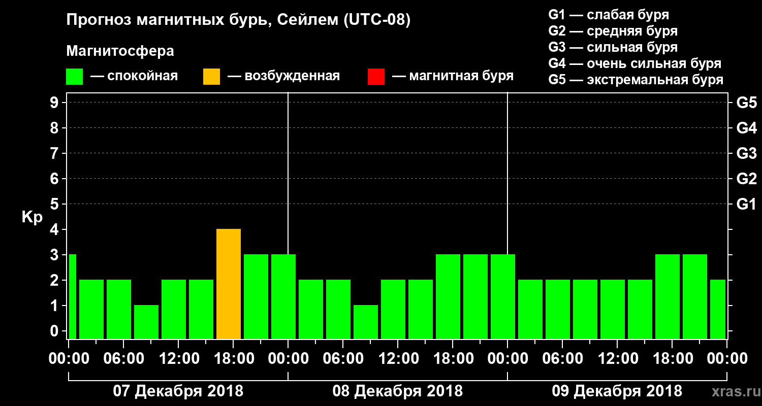 Прогноз магнитных бурь в Сейлеме — 7 декабря 2018 года